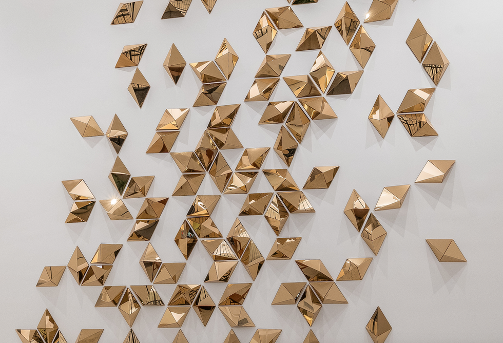 18'x13'x4" FOLDED GOLD SHEET ACRYLIC, 2023, NEW YORK CITY
