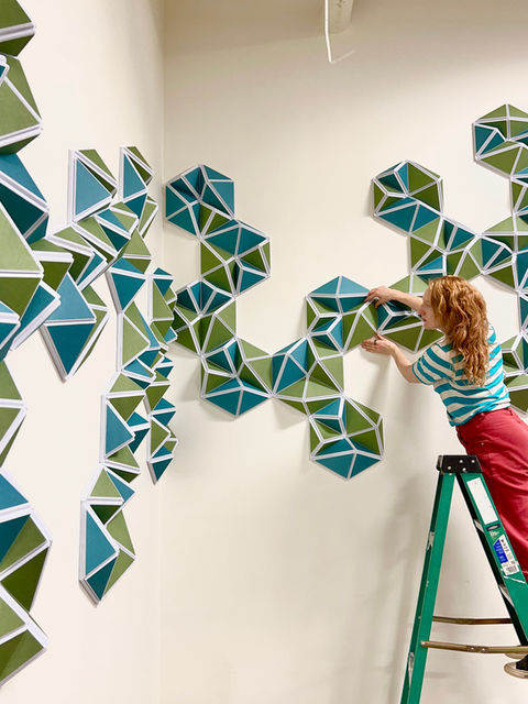Folded Poetry acoustic artwork merges art and function. Each piece reduces noise while elevating spaces by transforming walls into bold, geometric installations.